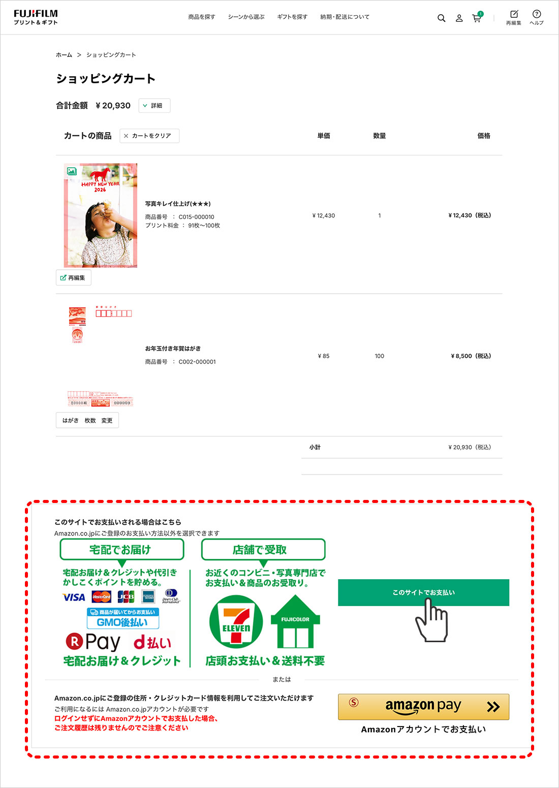 デザインができたらショッピングカートで注文内容をご確認のうえ、支払い画面にお進みください。