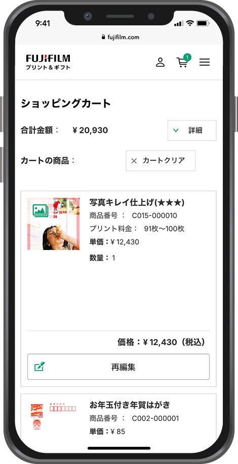 デザインができたらショッピングカートで注文内容をご確認のうえ、支払い画面にお進みください。