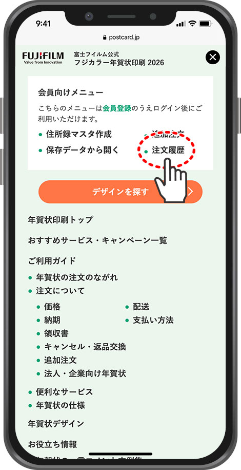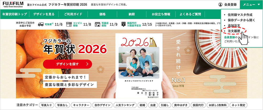 - 1)「富士フイルムのフジカラー年賀状」のページを開きます