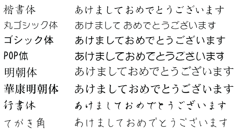 コメントや差出人宛名に用いられる書体は、全部で8種類あります。お好きな書体をお選びください。